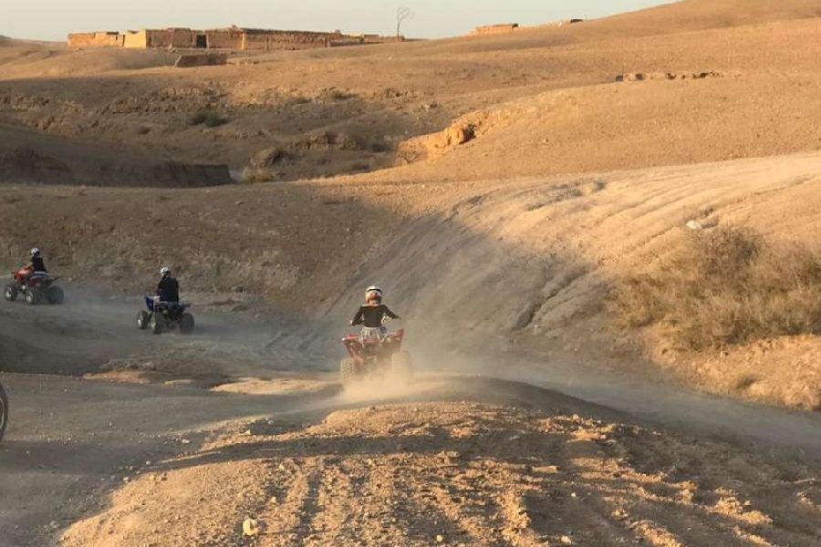 On the other hand, if you prefer an adrenaline-filled experience, quad biking through the Agafay Desert is an exhilarating option. Navigate rugged terrain, passing dry riverbeds and rocky hills, all while enjoying the thrill of off-road exploration. Quad biking offers a faster adventure and the ability to cover more terrain, revealing the diversity of desert landscapes.