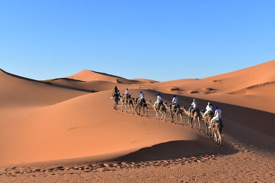 • Camel ride in Erg Chebbi dunes.