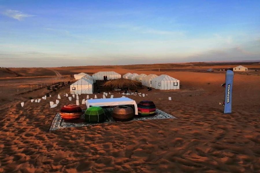 The highlight of the day arrives with an impressive experience: a camel trek through the rolling dunes of Merzouga.