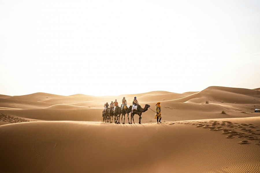 The day reaches its crescendo with a fascinating camel trek through the golden dunes of Merzouga, a surreal landscape that seems to stretch on forever. The rhythmic footsteps of the camels create a tranquil melody, breaking the deep silence of the desert. As the sun begins its descent, painting the sky in vibrant hues of orange and pink, the magic of the Sahara is revealed. A night under the celestial canopy at a desert camp completes this extraordinary day, providing a unique opportunity to connect with the timeless beauty of the desert and its mesmerizing nighttime symphony. Dinner and overnight in desert camp.