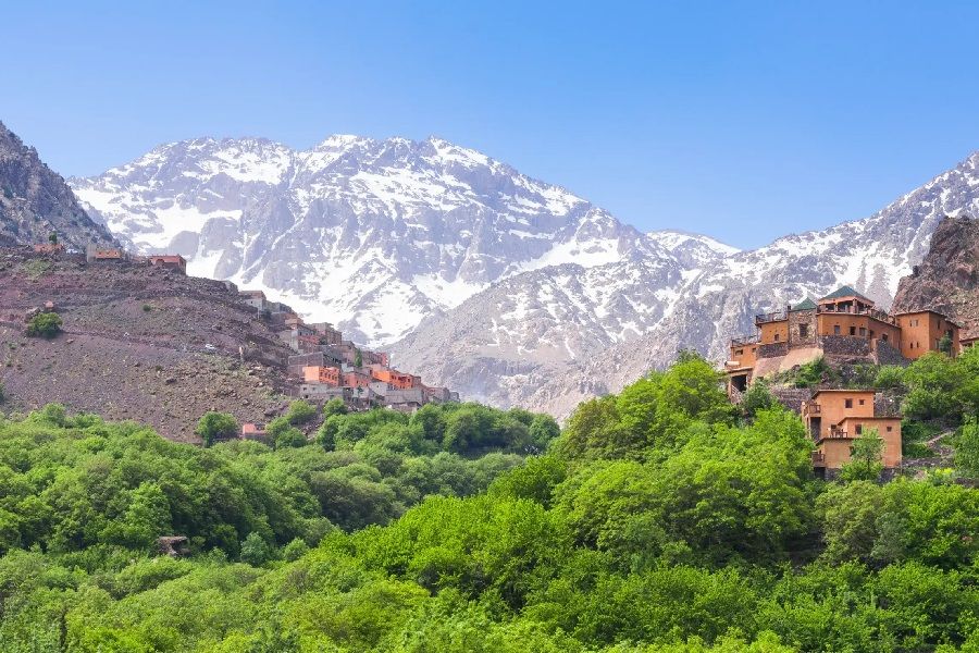 As you drive through the picturesque landscapes, you'll pass through charming Berber villages, terraced fields, and lush orchards. Imlil, situated at the base of Mount Toubkal, North Africa's highest peak, serves as the gateway to the Toubkal National Park. The valley is surrounded by snow-capped peaks and offers a refreshing change in elevation from Marrakech.